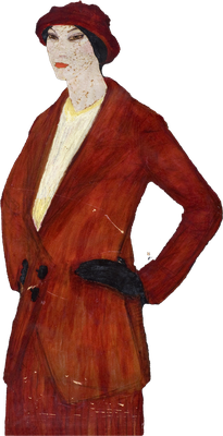Guardiamo una intrigante figura femminile, longilinea in piedi su sfondo scuro, elegantemente vestita con abito e cappello rosso, e ci ritroviamo di colpo nella Parigi dei primi anni del Novecento. Il dipinto può essere considerato tra i brani più intensi e sofisticati eseguiti durante la prima permanenza parigina dell'artista Ubaldo Oppi che nella sua avventura francese frequentava artisti molto noti. L’allungamento delle forme suggerisce un contatto con Modigliani, mentre il volto, così caratterizzato dal taglio a mandorla degli occhi, evoca la figura di Fernande Olivier, con cui Oppi ebbe probabilmente una relazione. Compagna e musa di Picasso negli anni della sua consacrazione artistica, Amélie Lang/Fernande era arrivata a Parigi dopo aver lasciato il marito, cambiando nome per non essere rintracciata. Fu modella per diversi grandi pittori del circolo di amici di Apollinaire e scrittrice. Dopo la fine della relazione con Picasso, Olivier fece lavori saltuari per mantenersi, fino alla fortuna commerciale del suo libro Picasso e i suoi amici, pubblicato nonostante l’opposizione dell’ormai affermatissimo artista.